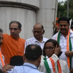 Chhatrapati Sambhaji Nagar छत्रपति संभाजी नगर : छत्रपति शिवाजी महाराज की मूर्ति गिरने की घटना से विपक्ष पर लाभ उठाने की कोशिश करने का आरोप लगाते हुए, भारतीय जनता पार्टी ने रविवार को महा विकास अघाड़ी के खिलाफ जवाबी विरोध प्रदर्शन किया। महाराष्ट्र भाजपा नेता प्रसाद लाड ने कहा कि विपक्ष राज्य के मालवन इलाके में मूर्ति गिरने की घटना पर एक नैरेटिव सेट करने की कोशिश कर रहा है और विधानसभा चुनाव से पहले मामले का राजनीतिकरण करने की कोशिश कर रहा है।