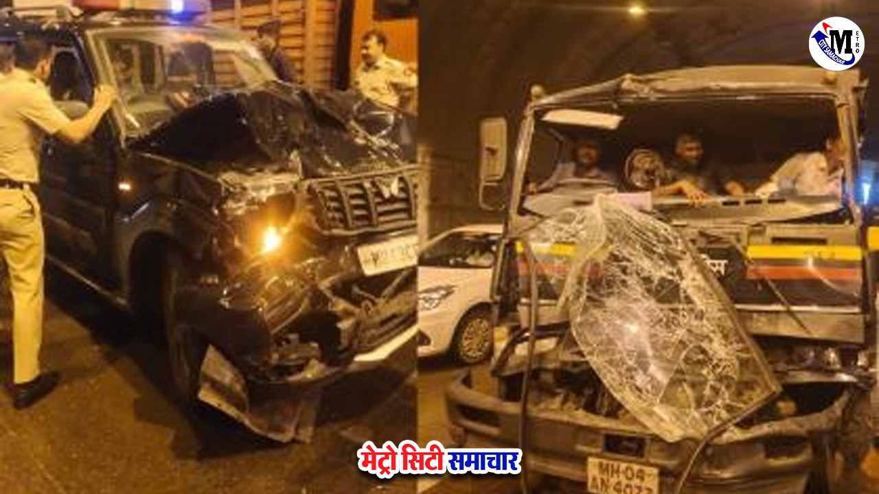नवी मुंबई: महाराष्ट्र के भाटन टनल के पास बुधवार सुबह एक बड़ा हादसा हो गया, जिसमें मुंबई और नवी मुंबई से पुणे की ओर जा रहे पुलिस काफिले की गाड़ियों की टक्कर में 6 पुलिसकर्मी और 5 बांग्लादेशी नागरिक घायल हो गए। सभी घायलों को कामोठे स्थित MGM अस्पताल में भर्ती कराया गया है।